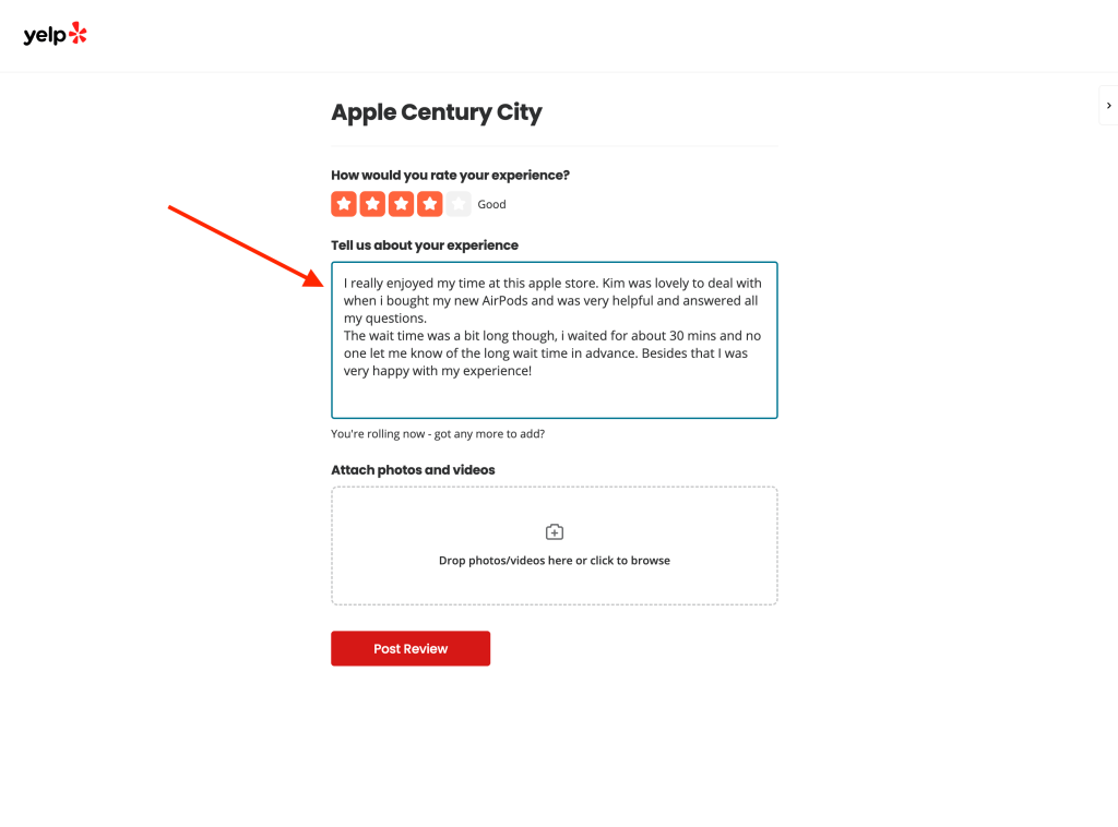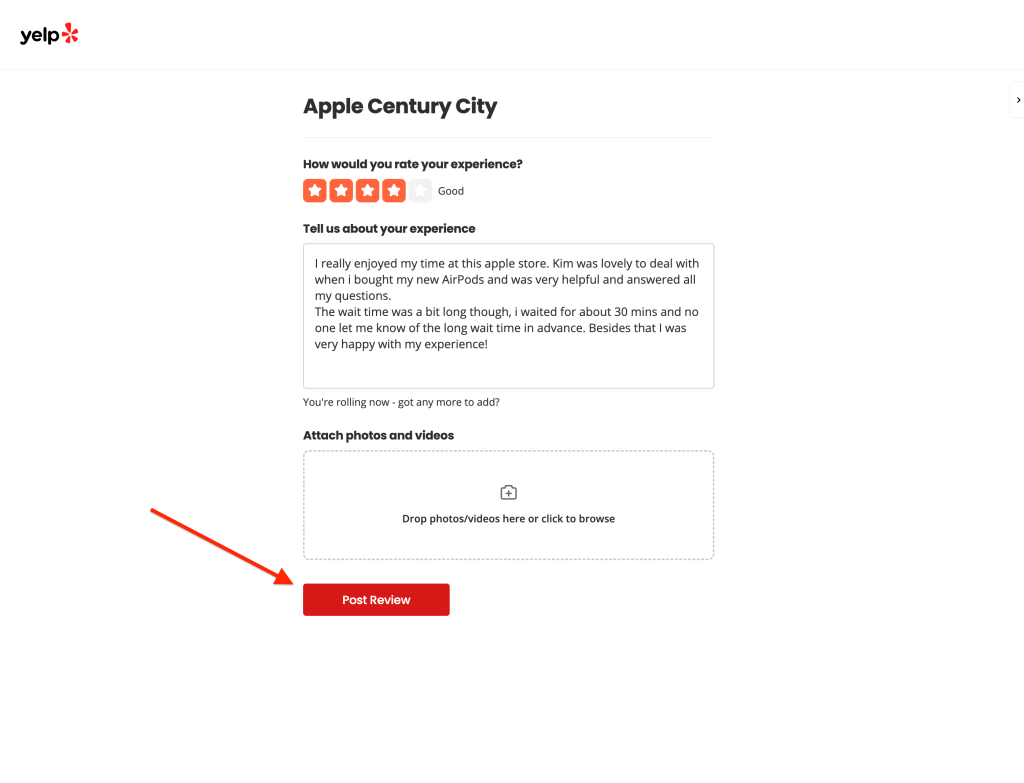 Once you’ve finished your Yelp review, hit “Post Review.”