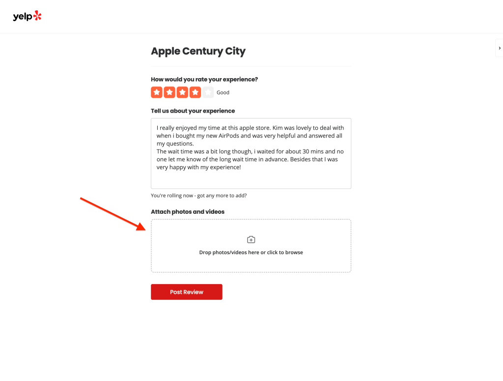 📌 This step is optional, but reviews with photos are taken more seriously and stand out more.