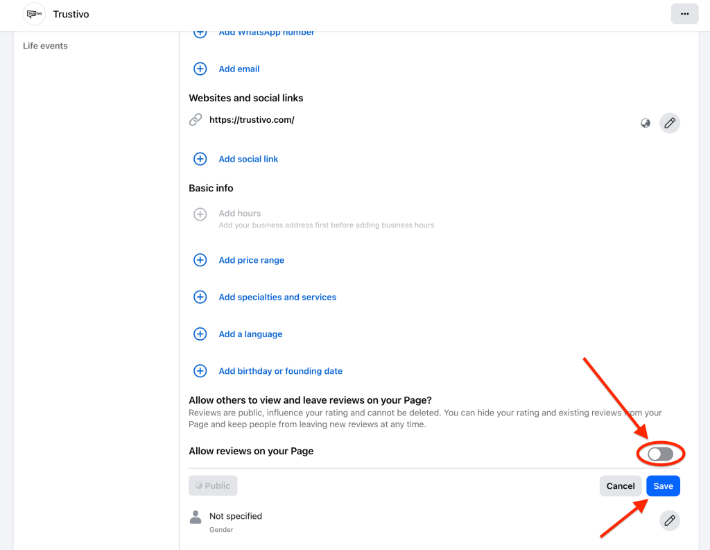 If Facebook won’t remove the review, and it’s something that’s clearly fake, spammy or part of a coordinated attack, you do have the option to turn off the reviews section entirely.