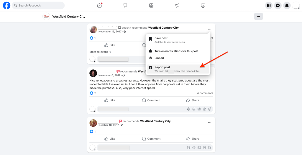 If the review is more than just negative — and actually breaks Facebook’s rules — you can report it.