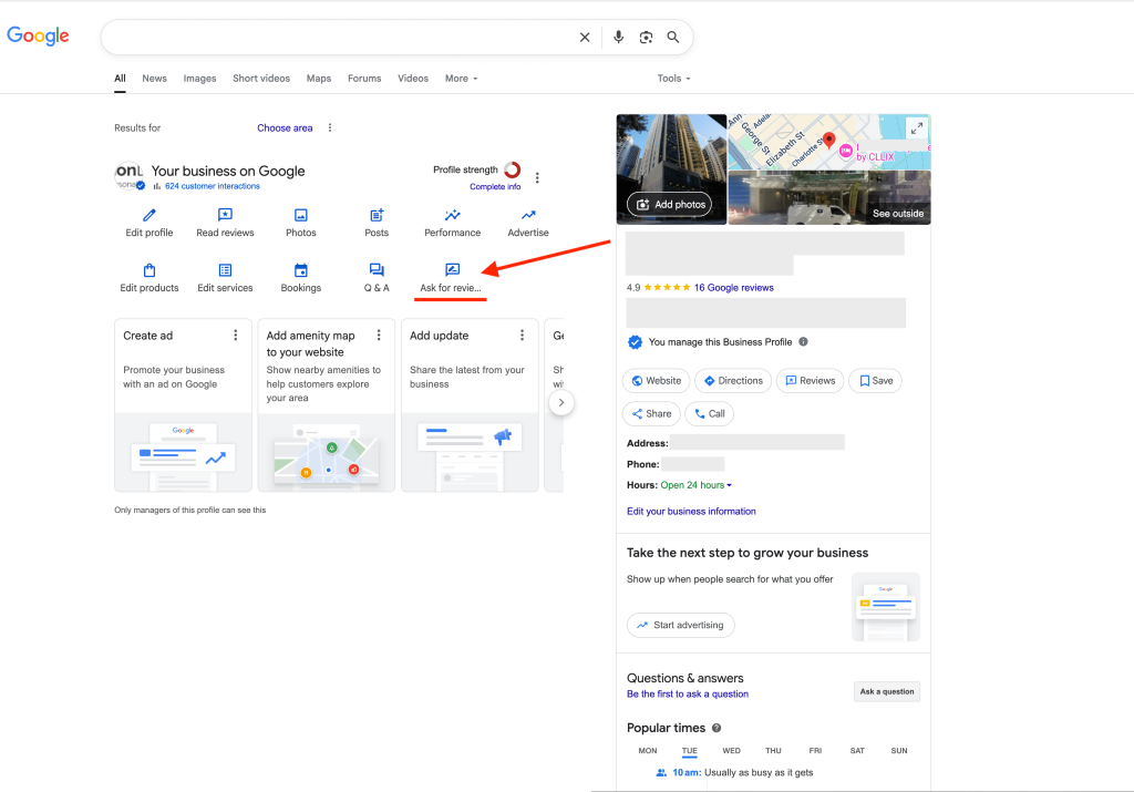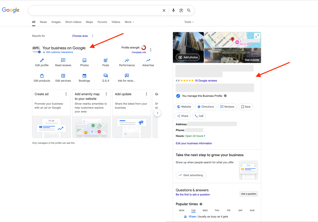 - Go to your Google Business Profile. You can find your GBP by searching for it in Google or Google Maps.